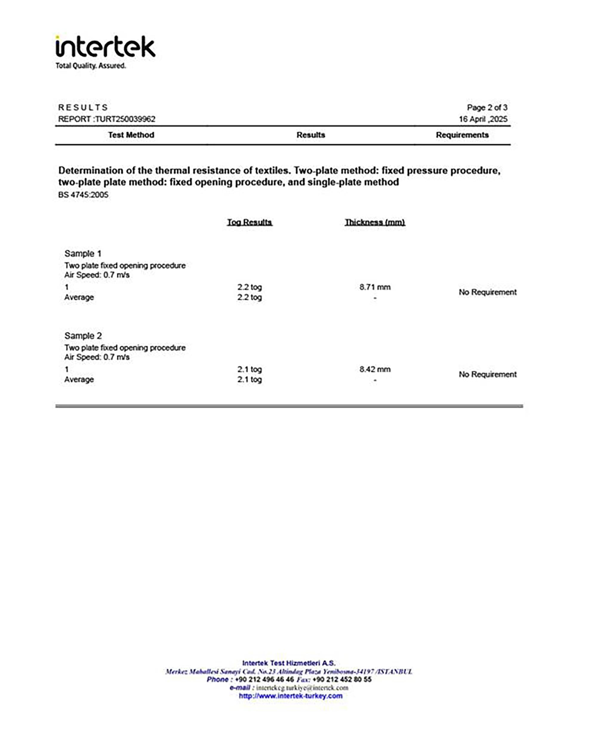 Yüksek Tog Derecesi (Thermal Overall Grade) (2.1'dir.)
