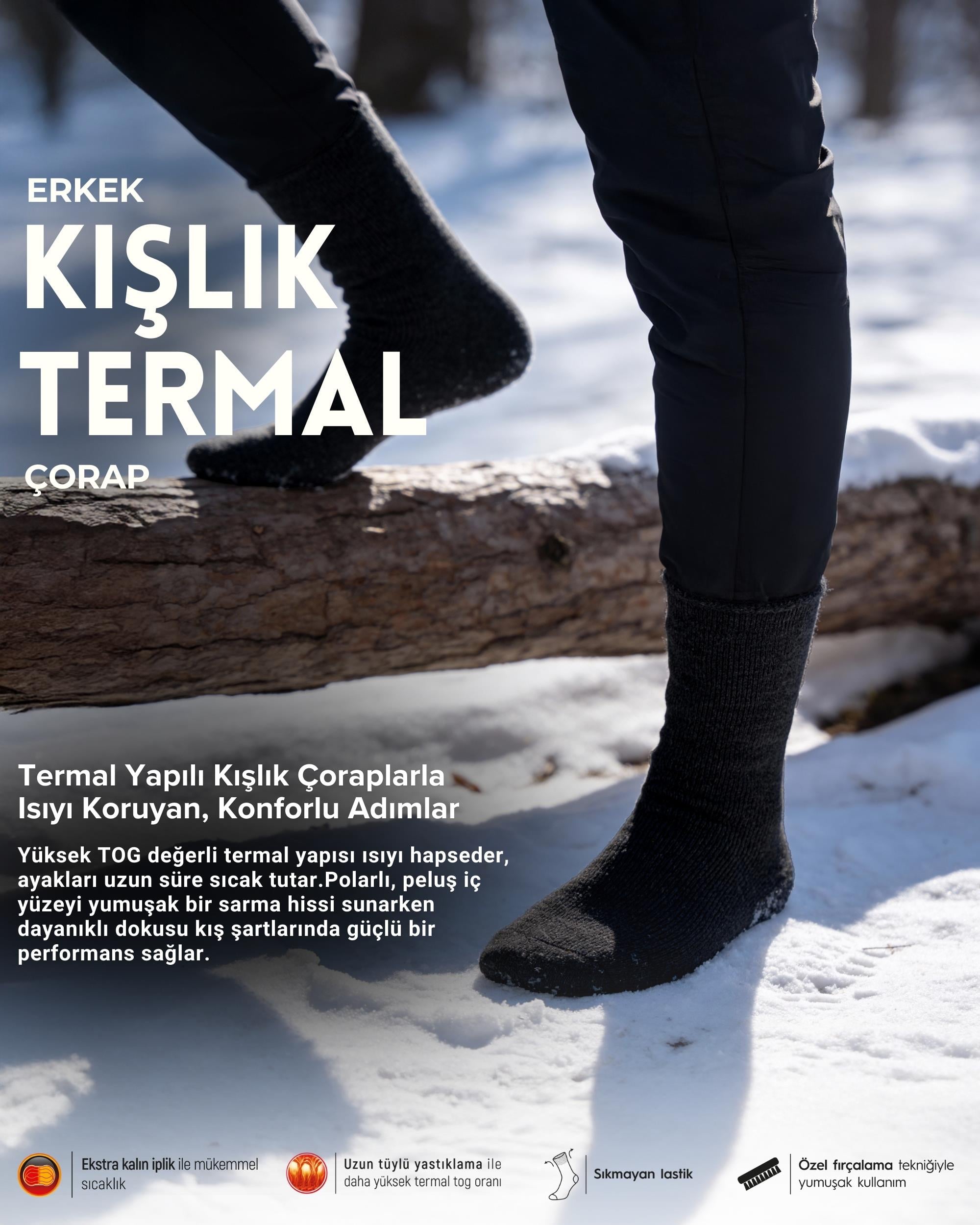 Kış aylarında ayakların sıcak kalmasını sağlamak, günlük konforun en kritik parçalarından biridir. Soğuk havalarda vücut ısısını korumak, üşümeyi engellemek ve gün boyu sıcaklık hissi sunmak için doğru çorap seçimi büyük önem taşır. Bolero’nun Erkek Kışlık Termal Çorap Siyah modeli, bu gereksinimleri karşılamak amacıyla özel olarak tasarlanmış üstün performanslı bir üründür.