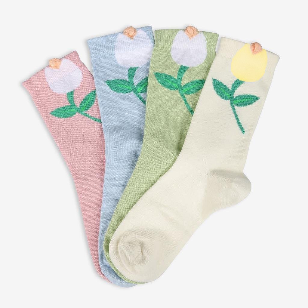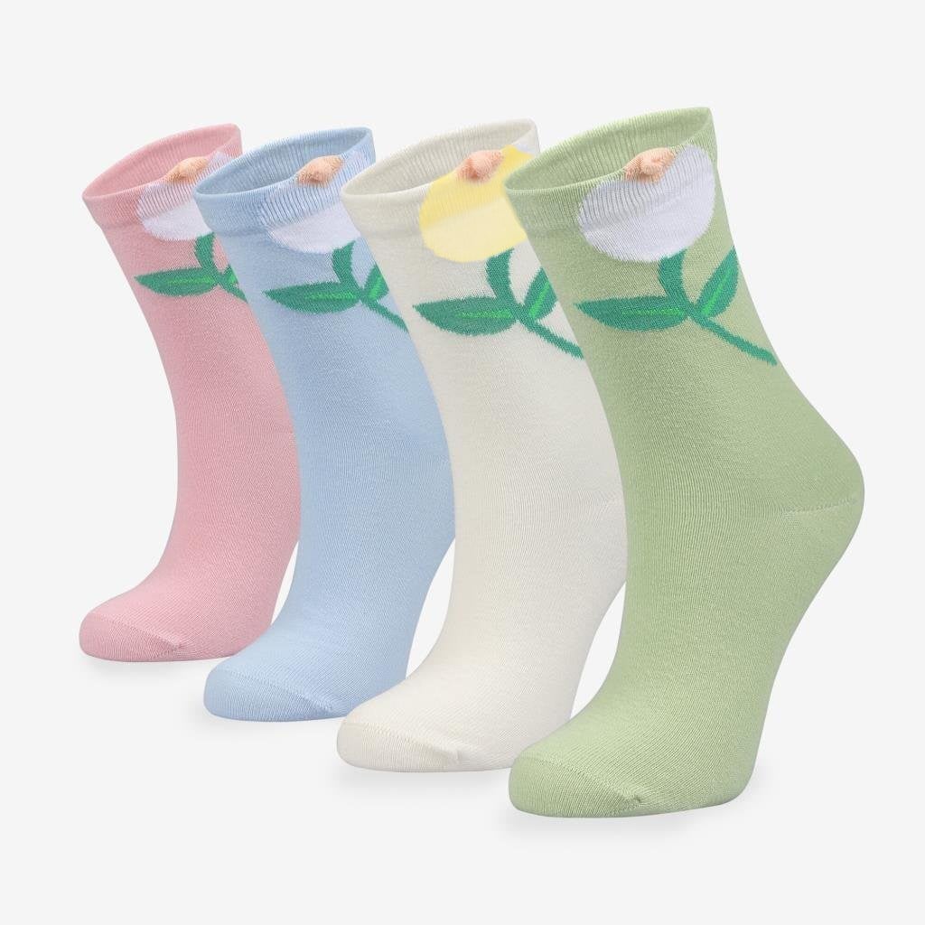 Kadın 4'lü Çiçekli Soket Çorap
