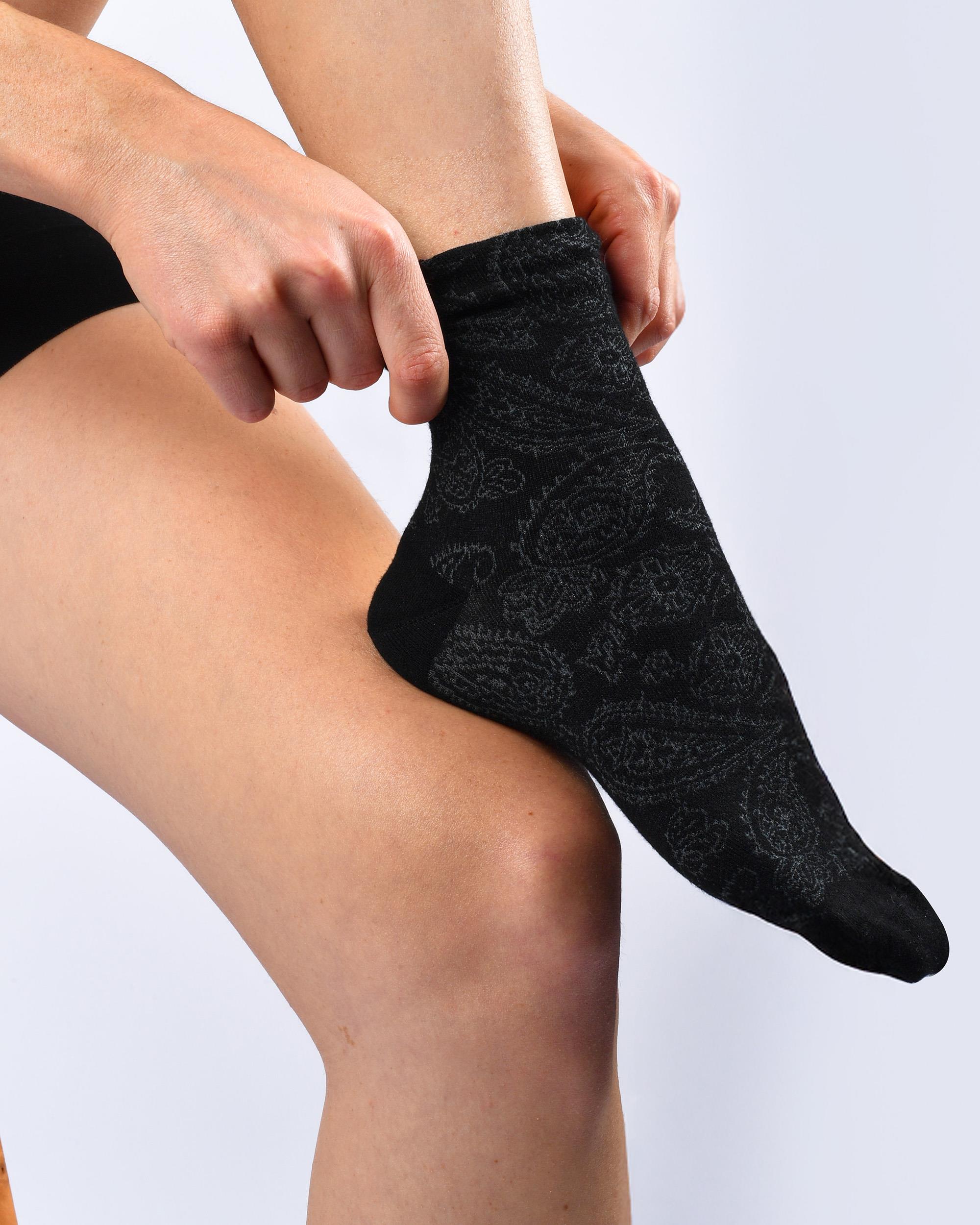Kadın Premium Dikişsiz Bambu Şal Desenli Çorap Siyah