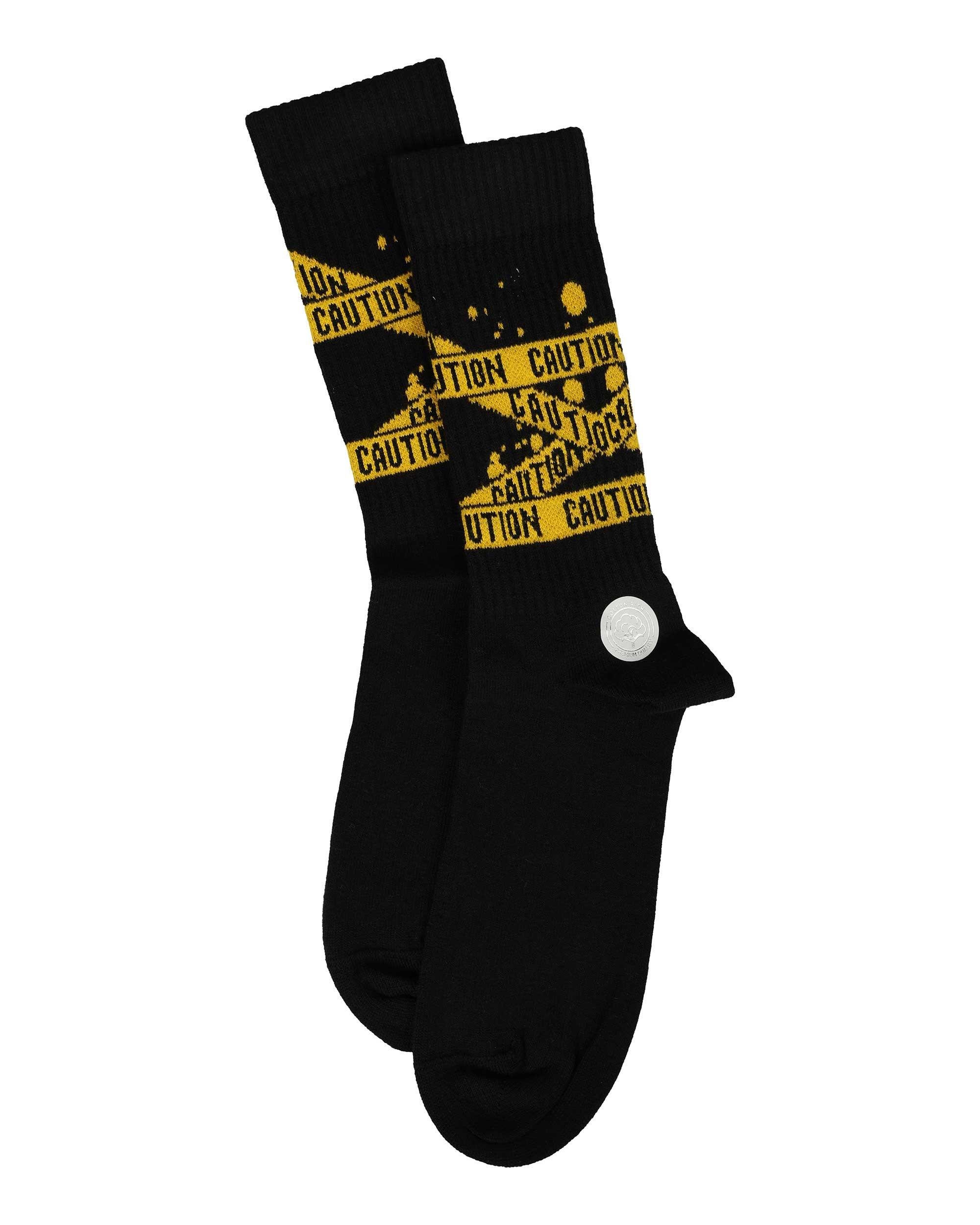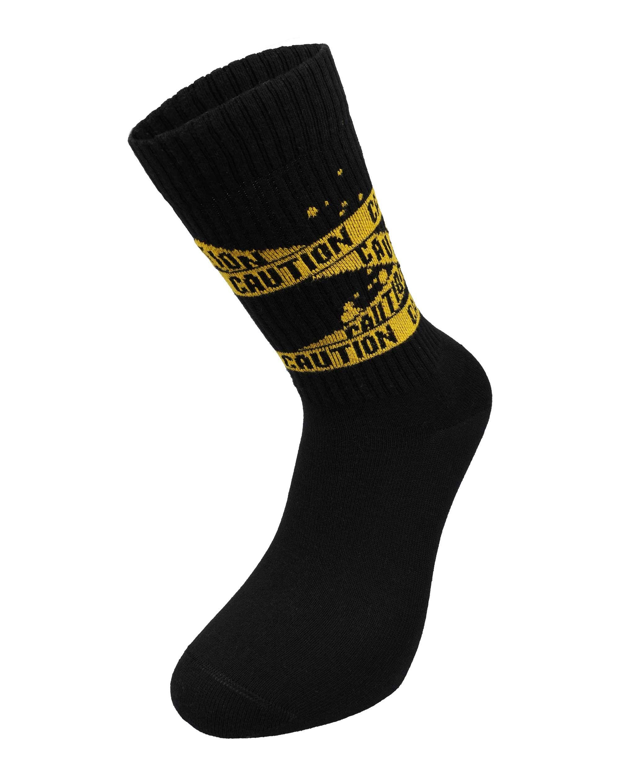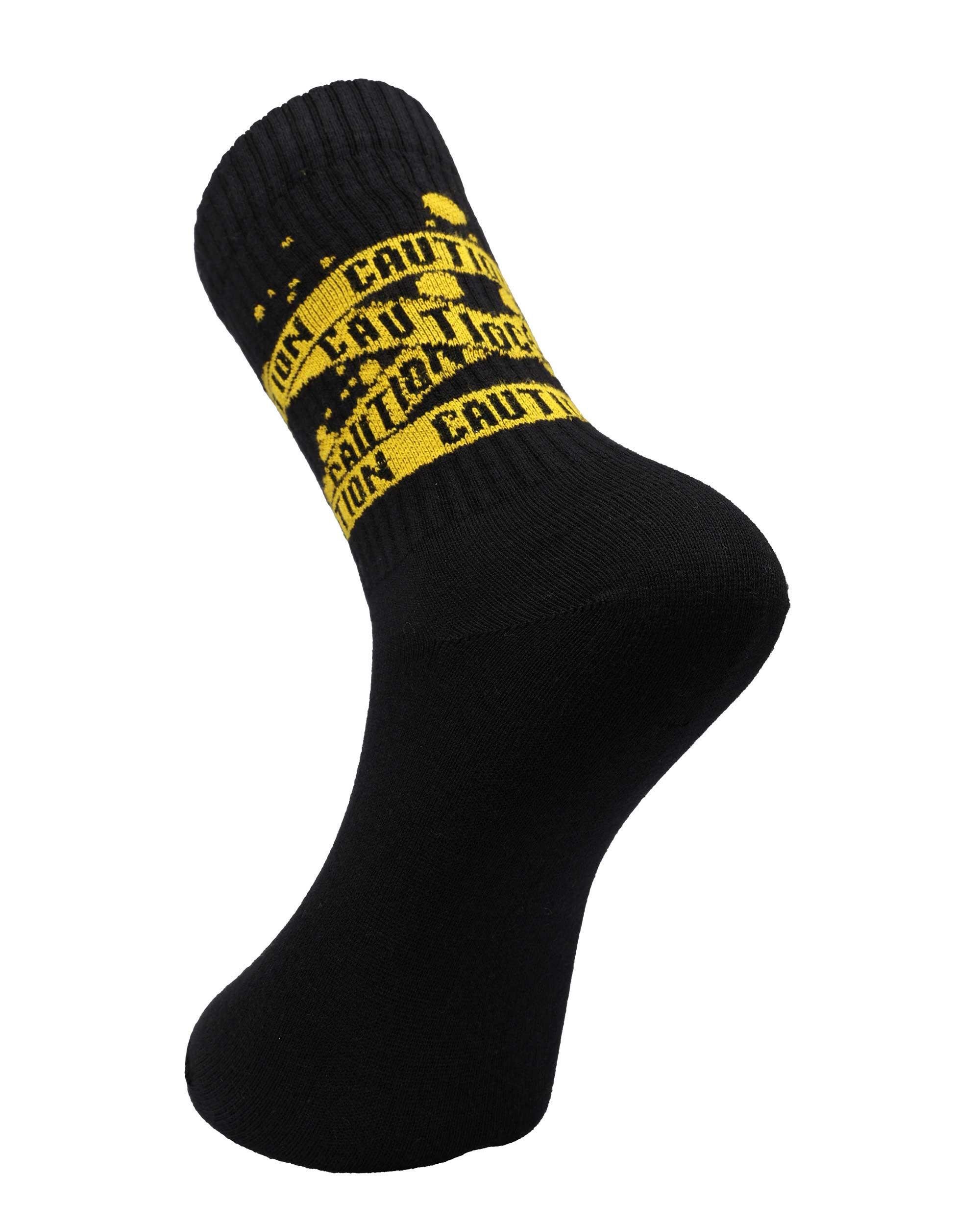 Siyah Fitilli Caution Desenli Erkek Çorap (BLR-E82-BW10861)